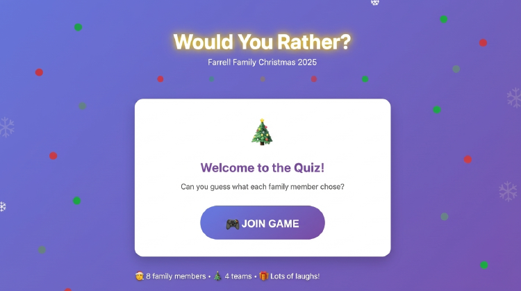 The other thing I did was indulge in some pure vibe coding to create a fun little game to play with the family over Christmas.